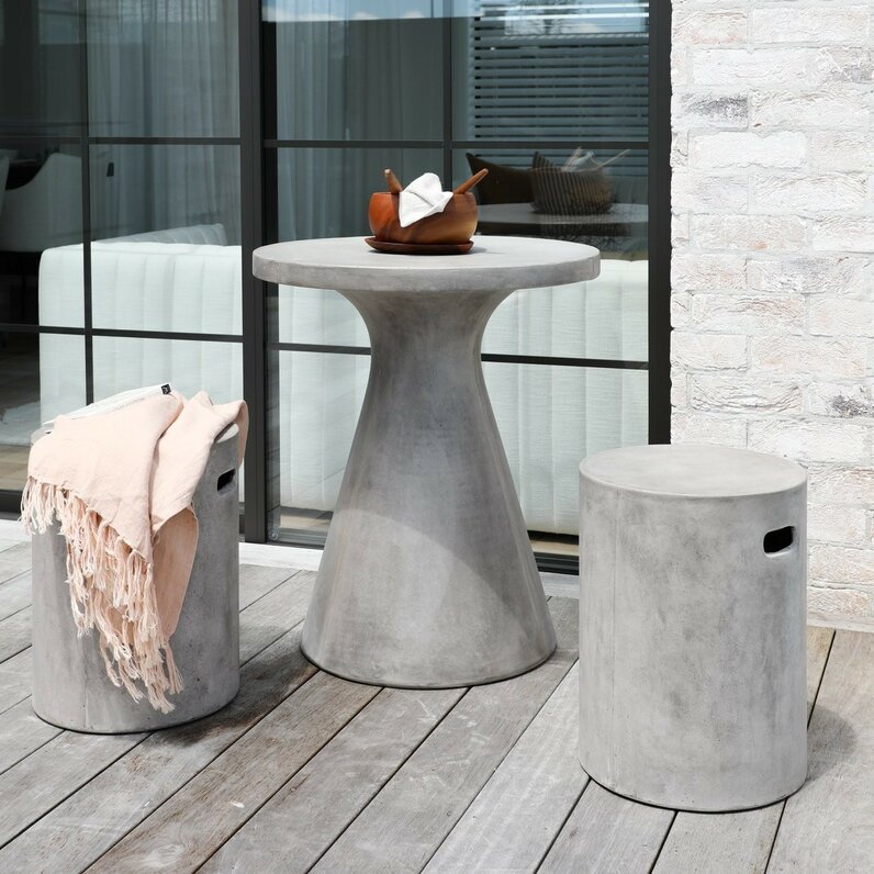 Have a small nook or balcony where space is at a premium? Our Corfu pedestal dining table is ideal for alfresco dining for two and constructed from concrete enables the table to be used either indoors or out.