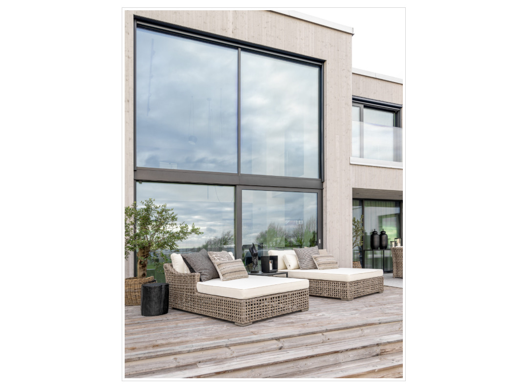 Classic wicker style furniture, created on a rustproof powder coated aluminium frame using handwoven polyethylene weave that combines a "Classic Grey” finish with extreme durability. Complemented with outdoor cushions in quick dry foam and solution dyed acrylic fabric.