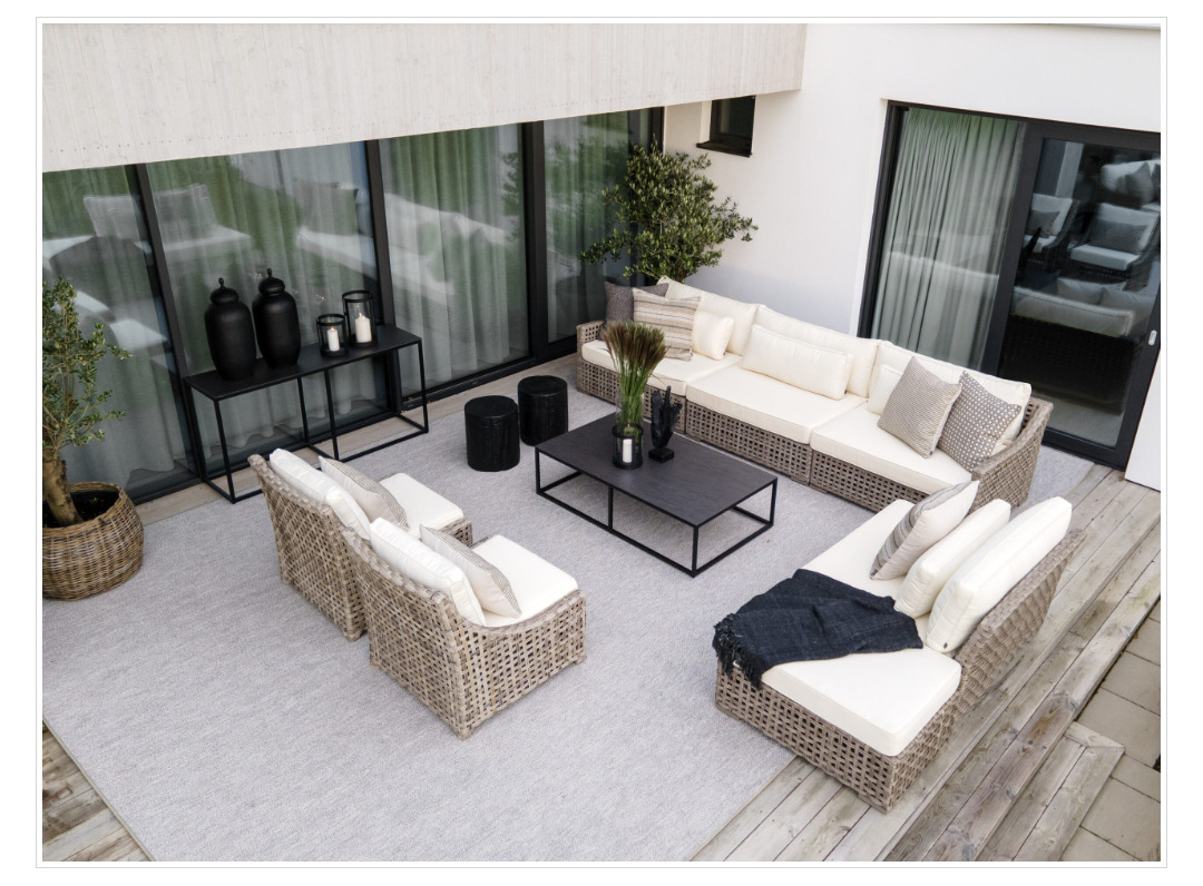 Classic wicker style furniture, created on a rustproof powder coated aluminium frame using handwoven polyethylene weave that combines a "Classic Grey” finish with extreme durability. Complemented with outdoor cushions in quick dry foam and solution dyed acrylic fabric.